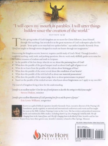 The disciples weren’t the only ones who needed help understanding the parables Jesus told. Believers today often need some clarification. Using this six-week interactive Bible study from trusted author and speaker Jennifer Kennedy Dean, you can explore the secrets of the kingdom of God as revealed in the parables Jesus shared. The study, with five daily lessons for each of six weeks, will help you understand what the kingdom of God is and how to release its power in your life.