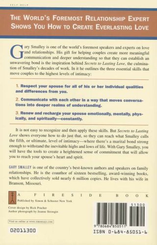 Gary Smalley is one of the world's foremost speakers and experts on love and relationships. His gift for helping couples create more meaningful communication and deeper understanding so that they can establish an unwavering bond is the inspiration behind Secrets to Lasting Love, the culmination of Smalley's decades of work. In it he outlines the three essential skills that move couples to the highest levels of intimacy: