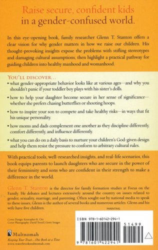 In this eye-opening book, family researcher Glenn T. Stanton offers a clear vision for why gender matters in how we raise our children. His thought-provoking insights expose the problems with stifling stereotypes and damaging cultural assumptions, then highlight a practical pathway for guiding children into healthy manhood and womanhood.