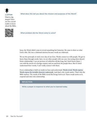 See for Yourself Bible Study Book with Video Access includes printed content for 10 weeks of study, including group sessions with helpful discussion questions, personal study between group sessions, applicable Scripture, "How to Use This Study," and tips for leading a group. Also, each Book contains a unique redemption code that enables you to access the teaching videos for each session.