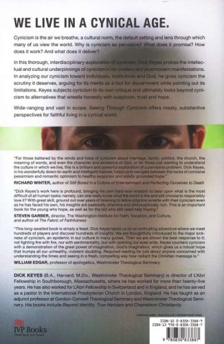 We live in a cynical age. Cynicism is in the air we breathe; it is a cultural norm; it is the default setting and lens through which many of us view the world. Why is cynicism so pervasive? What does it promise? How does it work? And what does it deliver? In this thorough, interdisciplinary exploration of cynicism, Dick Keyes probes the intellectual and cultural underpinnings of cynicism in its modern and postmodern manifestations. In analyzing our cynicism toward individuals, institutions and God, he gives cynicism the scrutiny it deserves, arguing for its merits as a tool for discernment while pointing out its limitations. Keyes subjects cynicism to its own critique and ultimately looks beyond cynicism to alternatives that wrestle honestly with suspicion, trust and hope. Wide-ranging and vast in scope, Seeing Through Cynicism offers meaty, substantive perspectives for faithful living in a cynical world.