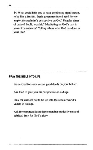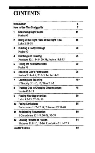 How can you develop a godly perspective toward aging? Explore what Bibical writers who speak honestly about both the blessings and limitations of growing older have to say. You will discover promises to claim and examples to follow as you study this important topic. It will challenge and encourage you to keep trusting and growing. Fisherman Bible Study Guides offer: penetrating questions that generate discussion, flexible format for groups or individual needs, helpful leader's notes, and an emphasis on daily application of Bible truth.