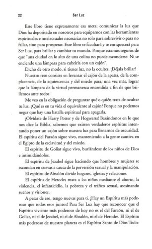 En Ser Luz Samuel Rodríguez —descrito por Fox News y CNN como "el líder Evangélico latino más influyente de los Estados Unidos"— nos ofrece un plan para enfrentarnos a la oscuridad en cada aspecto de nuestras vidas. Él llama a cada creyente y la iglesia a que se levanten y una vez más sean esa ciudad brillante en la colina que no sólo expone la oscuridad invasora, sino que la vence con la luz ardiente de Dios.
