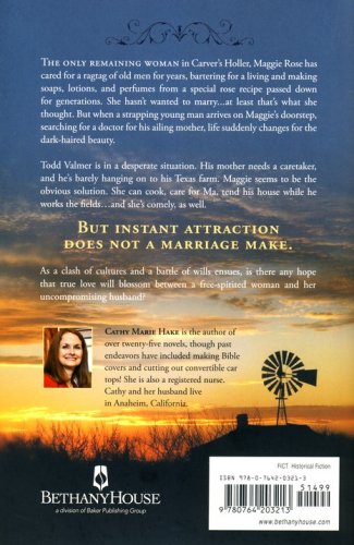 Todd Valmer should have known better. A farmer who's been through several disasters, he travels to Virginia to fetch his widowed mother to cook and help him around his Texas farm…or that was the plan until she keels over on the train and they get kicked off. Maggie Rose barters for a living and also makes soaps, lotions, and perfumes with a special rose recipe passed down from mother to daughter for generations. She hasn't wanted to marry…until that handsome Texan shows up. Her heart skips a beat, and when he proposes, a hasty marriage follows.