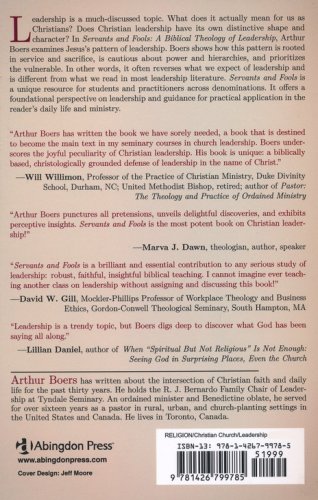 In Servants and Fools: A Biblical Theology of Leadership, Arthur Boers examines Jesus's pattern of leadership. Boers shows how this pattern is rooted in service and sacrifice, is cautious about power and hierarchies, and prioritizes the vulnerable. In other words, it often reverses what we expect of leadership, and is different from what we read in most leadership literature. Servants and Fools is a unique resource for students and practitioners across denominations. It offers a foundational perspective on leadership and guidance for practical application in the reader's daily life and ministry.