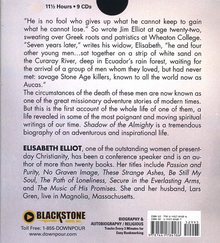 Review Shadow of the Almighty: The Life and Testament of Jim Elliot – unabridged audio book on CD.