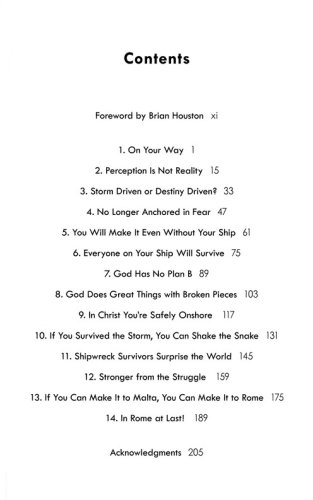 Some days you feel as if you take one step forward only to fall back two—or ten— steps. You struggle and push through one obstacle after another. You know God is present, but when is he going to rescue you from all the storms, shipwrecks, and snakes surrounding you? The apostle Paul faced a great crisis such as this on his epic voyage to Rome, which ended with a disastrous shipwreck—yet every person aboard was saved by grasping broken pieces of wood.
