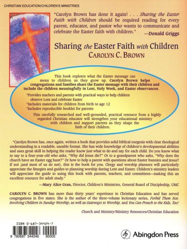 Carolyn Brown has done it again! As with all of her books, Brown writes clearly and helpfully, with conviction and passion for what to share and how to share one's faith with children. Sharing the Easter Faith with Children is theologically sound, biblically focused, educationally on target, and developmentally appropriate. It should be required reading for every parent, educator, and pastor who wants to communicate and celebrate the Easter faith with children. Brown packs a lot of practical suggestions, insights, and activities into this very readable resource. I am confident children will mature in their understanding and affirmation of the Easter faith when they have been nurtured in families and congregations that take seriously what Brown offers. –Donald Griggs, Author of Teaching Today’s Teachers to Teach   It is easy to share the Christmas story and faith with children. The story is beautiful and lends itself well to pageants and other celebratory events for children. It is not so easy to share the Easter story and faith with children because the message and images are complex. Many parents have trouble articulating what Easter means to them personally much less answering their children’s questions. In many congregations children are featured in palm parades on Palm Sunday, but they are not specifically planned for at other Holy Week services. When schools schedule an Easter break, many families go away and thus unintentionally bypass the whole Easter message for years. This book explores what the Easter message can mean to children as they grow up. The author helps congregations and families share the Easter message with their children and include the children meaningfully in Lent, Holy Week and Easter observances.  Included are materials for children from birth (in the church nursery) to age 12.  Also included are reproducible pages to create a booklet for parents.   The first section of the book describes the particular parts of the Easter faith that are important to children at different ages and comments on the biblical Easter texts from a child’s point of view. The second part of the book works through the Lenten season, describing ways congregations can include children and providing program and worship plans, including:   *Lenten disciplines for children and their families *Ash Wednesday *Celebrating Palm Sunday or looking ahead on Passion Sunday *Maundy Thursday: Recalling the Last Supper *Keeping Good Friday *The church-sponsored Easter Egg Hunt *Easter Sunday Morning   Another part of the book offers help to leaders who want to share the content with teachers, parents, or committees. Also included is a comprehensive list of related resources.   This carefully researched and well-grounded, practical resource from a highly regarded Christian educator will strengthen your educational ministry with children and support parents as they shape the faith of their children.