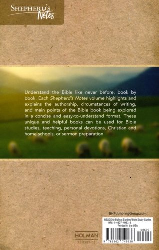 Enjoy the ease of understanding the Bible like never before, book by book. Shepherd's notes helps readers learn about the inspired authors of the books of the Bible and when and where they were first written. Each volume also highlights and explains the main points of the specific Bible book being explored in a concise and easy-to-understand format. These unique and helpful books can be used for Bible studies, teaching, personal devotions, Christian and home schools, or sermon preparation.
