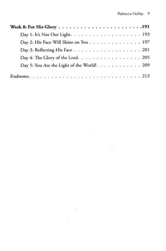 The very concept of light is seen all throughout Scripture, blooming with the first verses of Genesis and concluding with the last verses of Revelation, and it is through this that Shine sheds its own light onto God's Word. Rebecca J. Nolley utilizes compassion and inspiration to explore the significance of walking forward as beacons of light and the valuable message that when we shine the light of Jesus into the lives of others, more people will turn to Him, and He will be further glorified. Shine begins and ends its study with the Giver of Light and the simple truth that it is through Him and by Him we are able to shine.