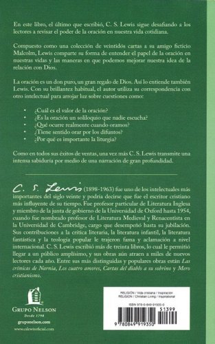 En esta edición de la ficticia colección de cartas de C. S. Lewis, el venerado autor reflexiona sobre la naturaleza de la oración: qué es, cómo funciona y cómo debe practicarse. La oración es un don puro, un gran regalo de Dios. Así lo entiende también Lewis. Con su brillantez habitual, el autor utiliza su correspondencia con otro intelectual para arrojar luz sobre cuestiones como:
