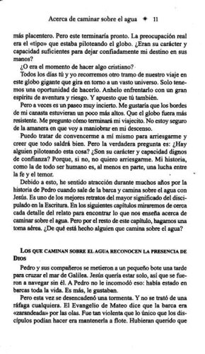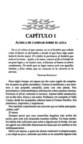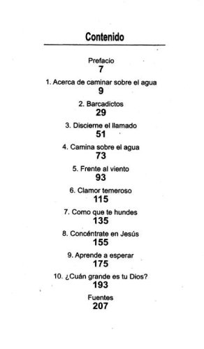 SI QUIERES CAMINARSOBRE LAS AGUASTIENES QUE SALIR DE LA BARCAEs posible que Pedro fuera el primero en salir de la embarcación, pero la invitación de Jesús es extensiva a usted hoy. Lo que le espera fuera es mucho agua y pocas probabilidades de mantenerse firme. Como seguidores de Cristo podemos seguir su llamado pero, ¿caminar sobre las aguas?Caminar sobre las aguas es:• Enfrentar los temores y no dejar que estos digan la ultima palabra. • Descubrir el llamado de Dios y seguirlo toda la vida.• Experimentar el poder de Dios en su vida para hacer lo que no podía por sus propias fuerzas.Cristo camino sobre esas aguas con éxito, si usted quiere hacerlo solo hay un requisito: Si quiere caminas sobre las aguas, tiene que salir de la barca.