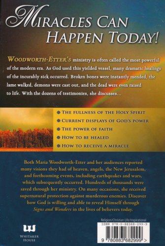 Maria Woodworth-Etter’s ministry is often called the most powerful of the modern era. As God used this yielded vessel, many dramatic healings of the incurably sick occurred. Broken bones were instantly mended, the lame walked, demons were cast out, and the dead were even raised to life. Included with the dozens of testimonies, she discusses…The fullness of the Holy SpiritCurrent displays of God’s powerThe power of faithHow to be healedHow to receive a miracleBoth Maria and her audiences reported many visions they had of heaven, angels, the New Jerusalem, and forthcoming events, including earthquakes and wars, which subsequently occurred. Hundreds of thousands were saved through her ministry. On many occasions, she received supernatural protection against murderous enemies. Discover how God is willing and able to reveal Himself through Signs and Wonders in the lives of believers today.