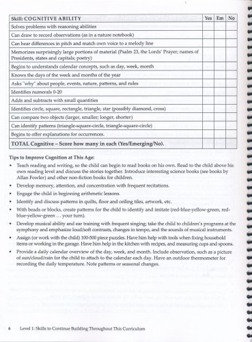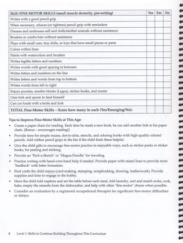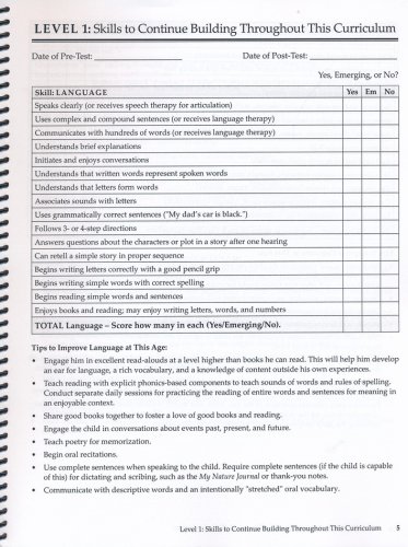 A pre-test assessment is provided along with a rubric for parents to assess skills to be developed during the program.