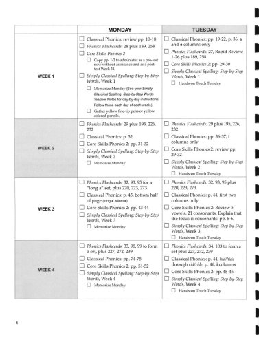 This set of lesson plans is taken from the full Simply Classical Level Two Curriculum Manual (sold-separately), which contains a full-year of lesson plans that include multiple subjects, including these phonics & reading lesson plans. Note that this guide simply schedules work found in other resources that must be purchased in order to use this; the following resources are required for this lesson plan: