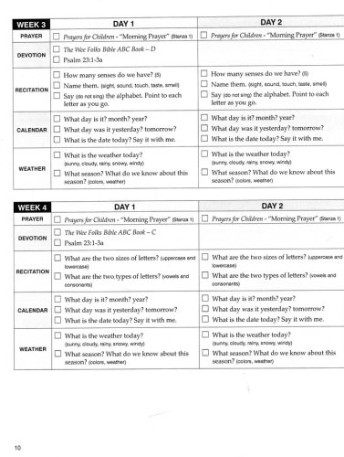 This set of lesson plans is taken from the full Level C Curriculum Manual (sold-separately), which contains a full-year of lesson plans that include multiple subjects, including these assignments. This lesson plan guide includes the prayer, devotion, recitation, and calendar assignments given each week. A list of recitation and memory work organized by week is provided. Weekly four-day plans are provided; assignments have accompanying checkboxes to keep everyone on track.