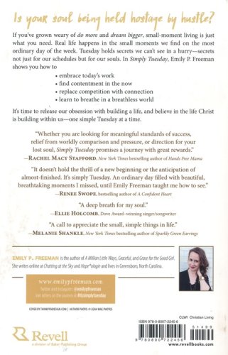 For those being pulled under by the strong current of expectation, comparison, and hurry, relief is found more in our small moments than in our fast movements. In Simply Tuesday, Emily P. Freeman helps readers