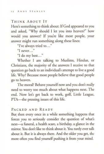 Surely there's more than one way to get to heaven? Bestselling author Andy Stanley addresses this popular belief held even among Christians. But believing that all good people go to heaven raises major problems, Stanley reveals. Is goodness not rewarded, then? Is Christianity not fair? Maybe not, he says. Readers will find out why Jesus taught that goodness is not even a requirement to enter heaven – and why Christianity is beyond fair. Andy Stanley leads believers and skeptics alike to a grateful awareness of God's enormous grace and mercy.