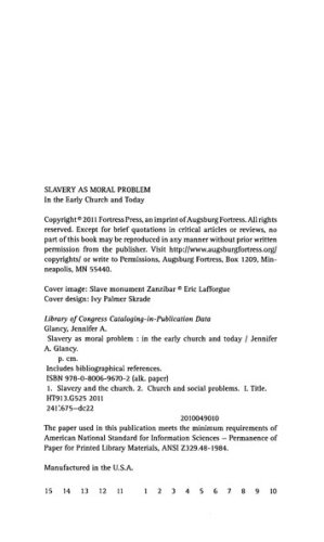 Though chapters discuss slavery in the first centuries of the church, Glancy's focus is on the question of moral imagination: What does it take for people to take a clear stand against entrenched and accepted wrong? In an age when debt bondage, child labor, sex slavery, and human trafficking are increasing and increasingly integrated into economic globalization, what should our response be? And do early Christian writings provide any help at all?