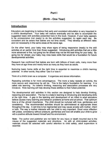 The first five years of a child's life are the most formative, so maximize the intellectual growth of your preschoolers with this comprehensive resource. Offering a complete readiness curriculum, the 260 weekly age-appropriate developmental activities are easy to understand, take only 10 minutes each, and use common household items. Also includes measurable parameters to profile progress and tips for solving behavioral problems. 337 pages, softcover from Xulon.