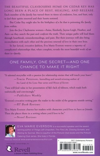 Cedar Key has long been a place of rest, healing, and release in the Claybourne family. But it might also be the birthplace of a lie that is poisoning the family from within. Join the strong Claybourne women–Anise, Kimberly, Jayme-Leigh, Heather, and Ami–as they each confront the truth. Their unique paths will lead them through heartbreak, misunderstandings, and pain. But their journeys will also bring reconciliation with each other and renewed love in their own lives.