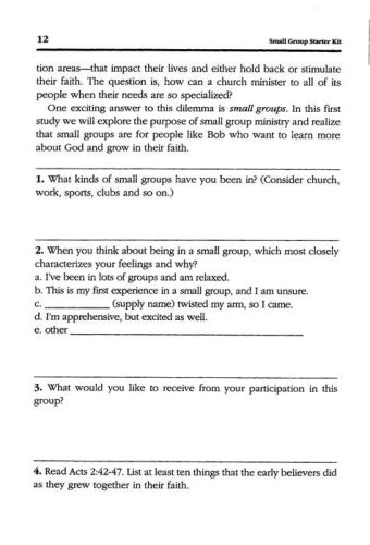 Do you want to build significant relationships, grow in your knowledge and understanding of Scripture, and learn how to reach out to others? Do you wonder how to begin? In this easy-to-use LifeGuide ® Bible Study guide Jeff Arnold provides you with everything you need for the first meetings of a small group. Getting acquainted, setting expectations, studying Scripture–it's all here in a step-by-step format that will help you get started well. For over three decades LifeGuide Bible Studies have provided solid biblical content and raised thought-provoking questions—making for a one-of-a-kind Bible study experience for individuals and groups. This series has more than 130 titles on Old and New Testament books, character studies, and topical studies.