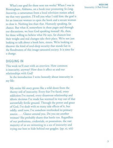 Building upon the message of the bestselling book, So Long, Insecurity, the So Long, Insecurity Group Experience will be an important tool for small groups, Bible studies, and book clubs to use as they dig even deeper into what it means to be truly secure. Designed to bring women together in a community of support, the Group Experience provides an in-depth look at what the Bible has to say about image, society, relationships, and our innate longing for soul-deep security. The So Long, Insecurity Group Experience will take readers on a journey deep into God’s Word and encourage them to work through their struggles with insecurity together while growing in knowledge of the only One who can provide lasting security.