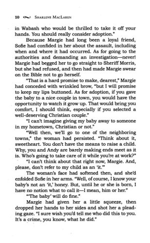 Ever since her parents died in a tragic train wreck, Sofia Rogers has worked a job, managed a household, and brought up her little brother, Andy—all on her own, because she prizes her independence. But that’s not to say it’s been an easy road. As if she didn’t have enough burdens to bear, through circumstances beyond her control, Sofie gets pregnant—and becomes an overnight pariah. Worse than the whispers and stares of others is the bewilderment she feels, knowing she may not be able to provide for her baby.Dr. Elijah Trent moved to Wabash to take over the medical practice of his grandfather, "Doc" Trent, as he is affectionately called by the locals. Moved by a sense of compassion, Eli maintains a hectic schedule, striving to meet all his patients’ needs. Just when he feels as if he’s bitten off a bit more than he can chew, he meets Sofie Rogers—and his world is turned upside down by this enchanting yet perplexing young woman, who rejects any apparent acts of charity.Even more frustrating, Sofie refuses to participate in an investigation that might bring her attacker to justice and thereby restore her reputation. Never one to mind his own business, Eli gets involved, anyway—and a world of troubles ensues, from arson to death threats. Nevertheless, Eli is determined to break down the wall of silence behind which Sofie hides her deep, dark secret, and to make her realize that trusting him—and her heavenly Father—is the only thing that makes sense.