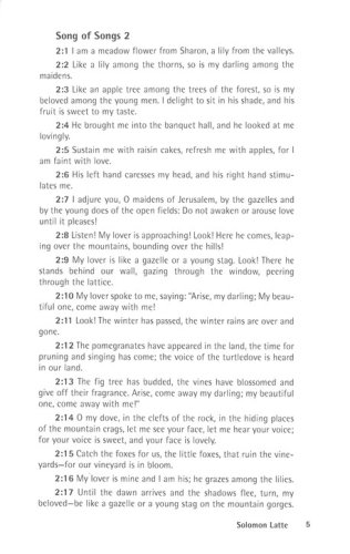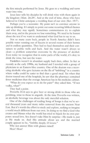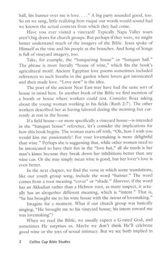 Solomon Latte is part of the Coffee Cup Bible Studies, a series of Bible studies for women in compact, workbook format that examine the "life and times" of certain Bible characters and the books of the Bible that pertain to them. Each study is to be read over a four-to-six week period, and study sections are broken down into short, daily segments designed to fit reader's busy lifestyles.Understanding that time is precious, the Coffee Cup Bible Studies are patterned in such a convenient way that they can be read during brief windows of opportunity that allow for meditation and study (breakfast, lunch, coffee breaks, etc.). Scripture is provided from the NET Bible (New English Translation), making Bible study convenient for occasions when you can't carry a Bible.The Song of Solomon (commonly referred to as"The Song of Songs") is a work of poetry. And because it is poetry, author Sandra Glahn treats it as such in her Bible study, Solomon Latte. But not only is Song of Songs a work of poetry; it also is a deeply intimate portrayal of love-so intimate, you might not permit your children to read it if weren't part of the Bible.In this verse-by-verse study of Song of Solomon, Sandra does not mince words as she examines some of the most explicit writing in Scripture. She also effectively examines how a picture of Christ and his "bride," the Christian, can be seen in this ancient newlywed couple who lived centuries before Christ's birth.