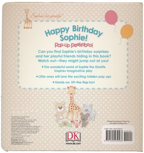 Pop-Up Peekaboo Happy Birthday Sophie! stars Sophie and her friends in adorable party scenes, each featuring flaps to flip and lots of colorful surprises. Does your baby love Sophie la girafe? Children around the world have fallen in love with Sophie, the giraffe toy from France that's become a worldwide favorite and phenomenon. If your baby loves to play with Sophie la girafe, why not help your child learn with Sophie, too? In our Sophie la girafe books, Sophie and her friends teach babies new concepts, introducing key subjects such as colors and basic vocabulary to babies in a way that feels familiar and fun to children who already enjoy playing with Sophie, their favorite giraffe toy.