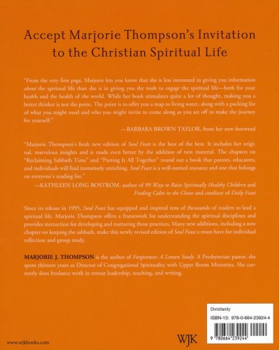 First released in 1995, this spiritual classic continues to be a best-seller, as thousands each year accept Marjorie Thompson's invitation to the Christian spiritual life. Offering a framework for understanding the spiritual disciplines and instruction for developing and nurturing those practices, Soul Feast continues to be a favorite for individual reflection and group study. Many new additions, including a new chapter on keeping the Sabbath, make this newly revised edition of Soul Feast a must-have.
