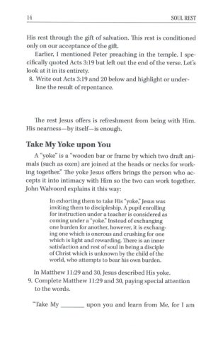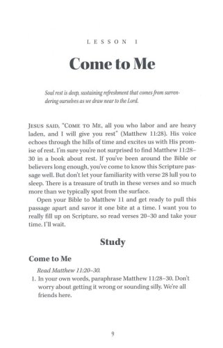 Rest is designed by God to refresh and restore us. But how do we get it, what does it look like, and what can it do for us on a daily basis? Soul Rest: A Journey with Jesus draws us into our Savior's discipleship program to see how He rested and how He instructed His followers to rest. It shows us that it is only in His footsteps and in His shadow that deep, life-changing soul rest resides. 7 Lessons for Women. (NKJV)