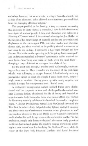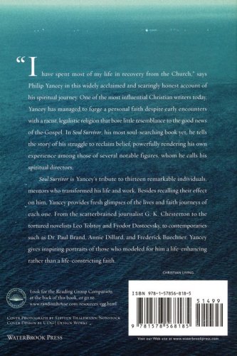 In Soul Survivor, Philip Yancey charts his spiritual pilgrimage through the influence of key individuals: "These are the people who ushered me into the Kingdom. In many ways, they are why I remain a Christian today, and I want to introduce them to other spiritual seekers."