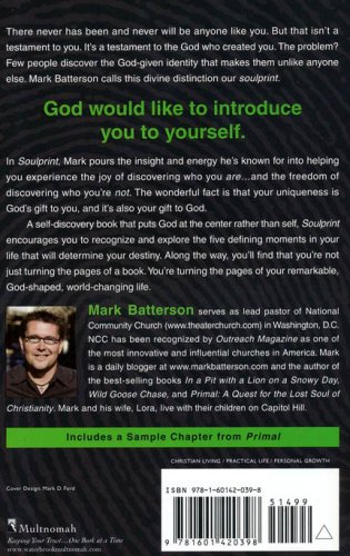 There never has been and never will be anyone like you. But that isn’t a testament to you. It’s a testament to the God who created you. The problem? Few people discover the God-given identity that makes them unlike anyone else. Mark Batterson calls this divine distinction our soulprint.