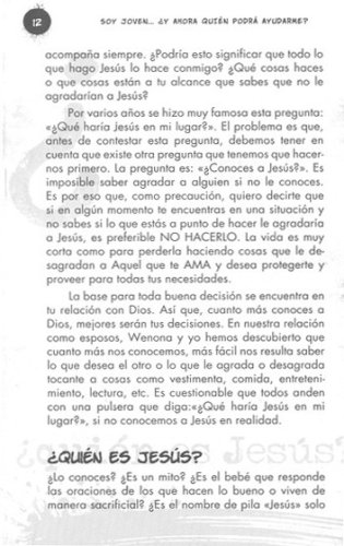 En este libro encontraremos principios o verdades universales de Dios. Sus autores les hablan al corazón de los jóvenes. Su identificación con ellos no se basa en lo que vivieron hace veinticinco años, sino en la experiencia acumulada durante más de veintitrés años en el trabajo con jóvenes. Soy Joven…¿Y Ahora Quién Podrá Ayudarme? no pretende abarcar todos los principios de vida que existen, sí muestran algunos que ayudarán a los jóvenes a tomar buenas decisiones.