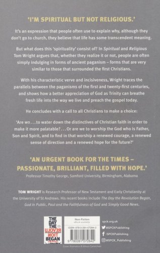 "I'm spiritual but not religious." It's a phrase that's often used to explain why, although they don't go to church, people still feel that life must have some kind of transcendent meaning. But what does this "spirituality" consist of? In Spiritual and Religious Tom Wright argues that, whether people realize it or not, they are often simply reverting to forms of ancient paganism that are very similar to those that confronted the earliest Christians.