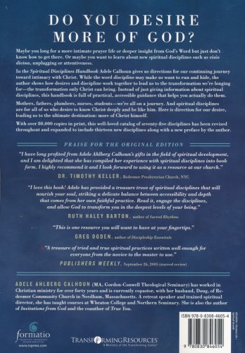 Maybe you long for a more intimate prayer life or deeper insight from God's Word but just don't know how to get there. Or maybe you want to learn about new spiritual disciplines like visio divina, unplugging or attentiveness. In Spiritual Disciplines Handbook Adele Calhoun gives us directions for our continuing journey toward intimacy with Christ. While the word discipline may make us want to run and hide, the author shows how desires and discipline work together to lead us to the transformation we're longing for—the transformation only Christ can bring. Instead of just giving information about spiritual disciplines, this handbook is full of practical, accessible guidance that helps you actually practice them. With over 80,000 copies in print, this well-loved catalog of seventy-five disciplines has been revised throughout and expanded to include thirteen new disciplines along with a new preface by the author. Mothers, fathers, plumbers, nurses, students—we're all on a journey. And spiritual disciplines are for all of us who desire to know Christ deeply and be like him. Here is direction for our desire, leading us to the ultimate destination: more of Christ himself.