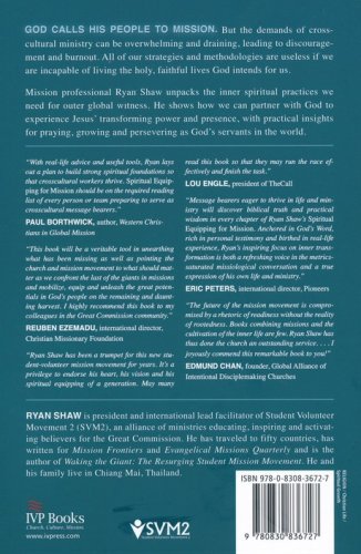God calls his people to mission. But the demands of crosscultural ministry can be overwhelming and draining, leading to discouragement and burnout. All of our strategies and methodologies for reaching others are useless if we are incapable of living the holy, faithful lives God intends for us. Yet God does not leave us on our own. The Holy Spirit equips us to succeed and thrive spiritually in preparation of becoming God's message bearers in the world. Spiritual formation and discipleship are at the core of effective and fruitful mission. Mission professional Ryan Shaw unpacks ten fundamental spiritual keys we need to practice to have a successful outer global witness. He shows how we can partner with God to experience Jesus' transforming power and presence, with practical insights for praying, growing and persevering as God's servants in the world. God is calling a new generation to serve long-term to fulfill the Great Commission. The Holy Spirit is at work within us to equip and enable mission workers in and out of the field. Discover how you can become who God wants you to be as his ambassador to the world.