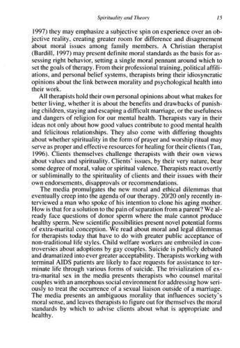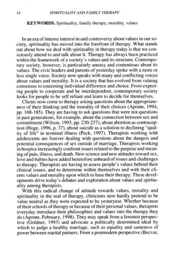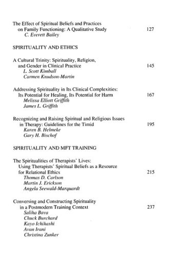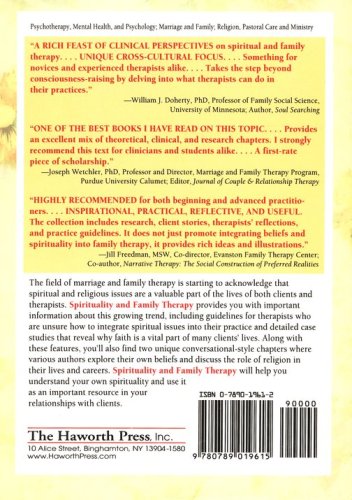 The field of marriage and family therapy is starting to acknowledge that spiritual and religious issues are a valuable part of the lives of both clients and therapists. Spirituality and Family Therapy provides you with important information about this growing trend, including guidelines for therapists who are unsure how to integrate spiritual issues into their practice and detailed case studies that reveal why faith is a vital part of many clients' lives. Along with these features, you'll also find two unique conversational-style chapters where various authors explore their own beliefs and discuss the role of religion in their lives and careers. Spirituality and Family Therapy will help you understand your own spirituality and use it as an important resource in your relationships with clients. Paperback.