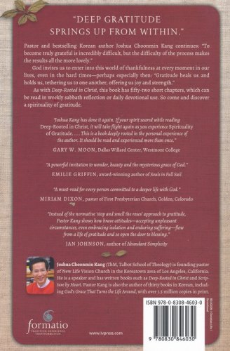 "Deep gratitude springs up from within," writes pastor and bestselling Korean author Joshua Choonmin Kang. "To become truly grateful is incredibly difficult, but the difficulty of the process makes the results all the more lovely." God invites us to enter into this world of thankfulness at every moment in our lives, even in the hard times—perhaps especially then. Pastor Kang continues: "Gratitude heals us and holds us, tethering us to one another, offering us joy and strength." As with Deep-Rooted in Christ, this book has fifty-two short chapters that can be read in weekly sabbath reflection or daily devotional use. So come and discover a spirituality of gratitude.