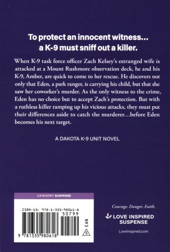 When K-9 task force officer Zach Kelsey's estranged wife is attacked at a Mount Rushmore observation deck, he and his K-9, Amber, are quick to come to her rescue. He discovers not only that Eden, a park ranger, is carrying his child, but that she saw her coworker's murder. As the only witness to the crime, Eden has no choice but to accept Zach's protection. But with a ruthless killer ramping up his vicious attacks, they must put their differences aside to catch the murderer_before Eden becomes his next target.