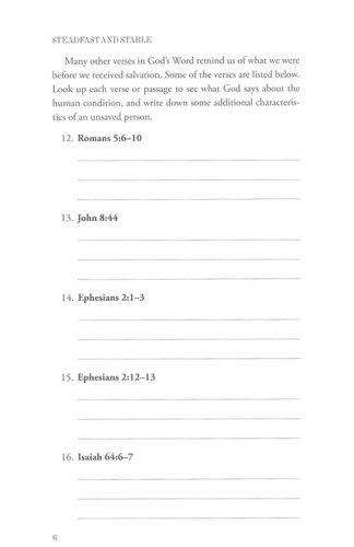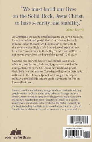 Steadfast and Stable: The Biblical Foundation of Your Faith by Monte Leavell is a seven-session Bible study that explores God's beautiful, loved-based relationship with mankind. He discusses such topics as sin, salvation, justification, faith, and forgiveness and examines the many benefits of the Christian's new relationship with God. Both new and mature Christians will grow in their daily walk through this helpful study.