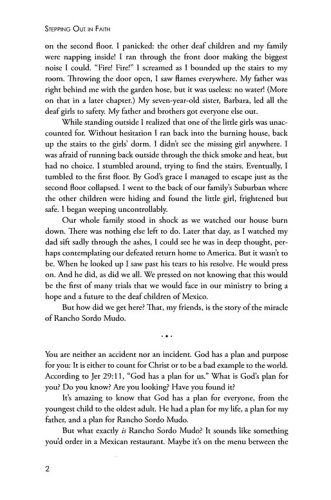 This is the amazing story of Rancho Sordo Mudo, a free home and school for deaf children in Mexico. Founded in 1969 by Ed and Margaret Everett, the Ranch has challenged and changed thousands of lives. Through fire and restoration, triumph and devastation, the family has never lost faith in God's divine plan. As a result, their unwavering persistence and devotion transformed 500 acres of unoccupied land into a blessed ministry that has provided hope and a future for deaf children for nearly forty years.