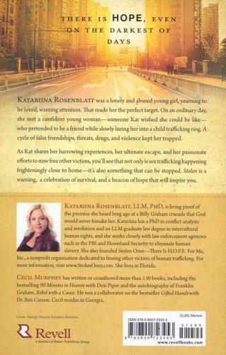 As Kat shares her harrowing experiences, readers will quickly realize the frightening truth that these terrible things could have happened to any child–a neighbor, a niece, a friend, a sister, a daughter. But beyond that, they will see that there is real hope for the victims of sex trafficking. Stolen is more than a warning. It is a celebration of survival that will inspire.