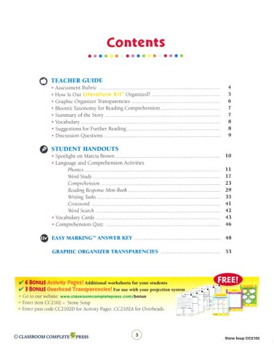 Please Note: the book Stone Soup by Marcia Brown is required and not included with this study guide.