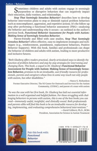 Once you've determined the purpose of a child's or student's seemingly senseless behavior by doing a functional behavior assessment (FBA), the next step is to work on changing or modifying the behavior. Stop That Seemingly Senseless Behavior! follows up on Dr. Glasberg's previous book, Functional Behavior Assessment for People with Autism, with a guide to developing an effective behavior intervention plan to stop undesirable behaviors such as hitting, screaming, or repetitive questioning.