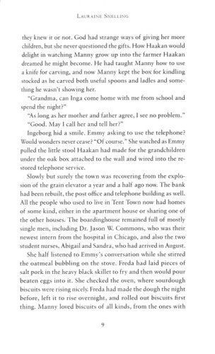 Anji Baard Moen, a recent widow, returns from Norway with her children. She quickly settles back into life in Blessing, teaching Norwegian history in the high school and writing articles for the Blessing Gazette. When tragedy strikes, Anji steps in to run the newspaper and soon finds a kindred spirit in the widower who owns the printing press. As they spend time together, Anji wonders if there's something more than friendship growing between them.