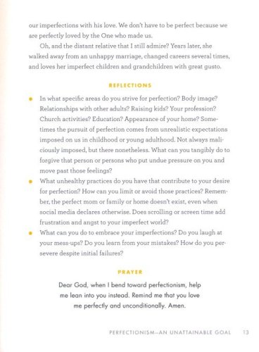 52 WEEKS OF TRUTH-BEARING PRAYERS AND DEVOTIONS-cherry-picked verses of God's most powerful living words are meant to transform, inspire, and motivate moms to seek God no matter the situation or circumstanceREFLECTION QUESTIONS FOR RECEIVING GOD'S TRUTHS-each devotion ends with thought-provoking questions that give moms the opportunity to reflect on the lessons and truths that God is trying to convey WRITTEN FOR MOMS OF ALL AGES AND LIFE STAGES-no matter your age or what stage you are in, each devotion reinforces that God is with you every step of your parenting journey REAL STRUGGLES OF MOTHERHOOD-from mom burnout and guilt to hurtful comparisons, perfectionism, body images, and lack of self-care, this devotional deeply explores the struggles that moms wrestle with the most while reassuring moms that God knows their worth and chose them to raise and care for their children