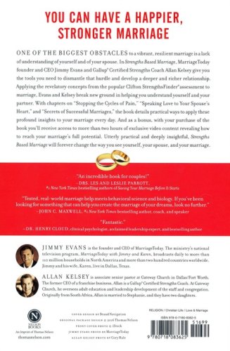 One of the biggest obstacles to a happy, strong marriage is a lack of understanding of yourself and your spouse. With Strengths Based Marriage, MarriageToday cofounder Jimmy Evans and Gallup-trained strengths advocate Allan Kelsey give readers the tools they need to dismantle that hurdle and develop a deeper and richer relationship. Applying the revelatory concepts from the popular Clifton StrengthsFinder assessment to marriage (assessment itself not included in purchase price), Evans and Kelsey break new ground in helping readers understand themselves and others. With chapters on "Stopping the Cycles of Pain," "Speaking Love to Your Spouse’s Heart," and "Secrets of Successful Marriages," the book details practical ways to apply these profound insights to your marriage every day.