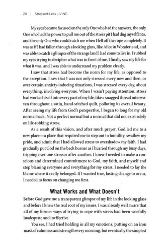 perspective and re-energized faith. STRESSED-LESS LIVING offers life-changing, heart-renewing, long-lasting remedies that will bring peace, even when things feel out of control.
